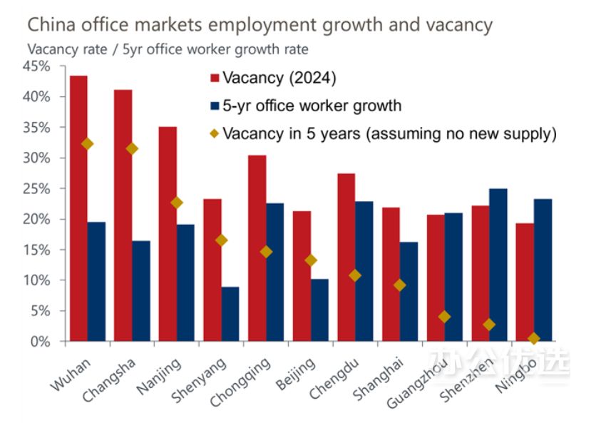 大多数中国市场至少在五年内不需要任何新的办公空间。