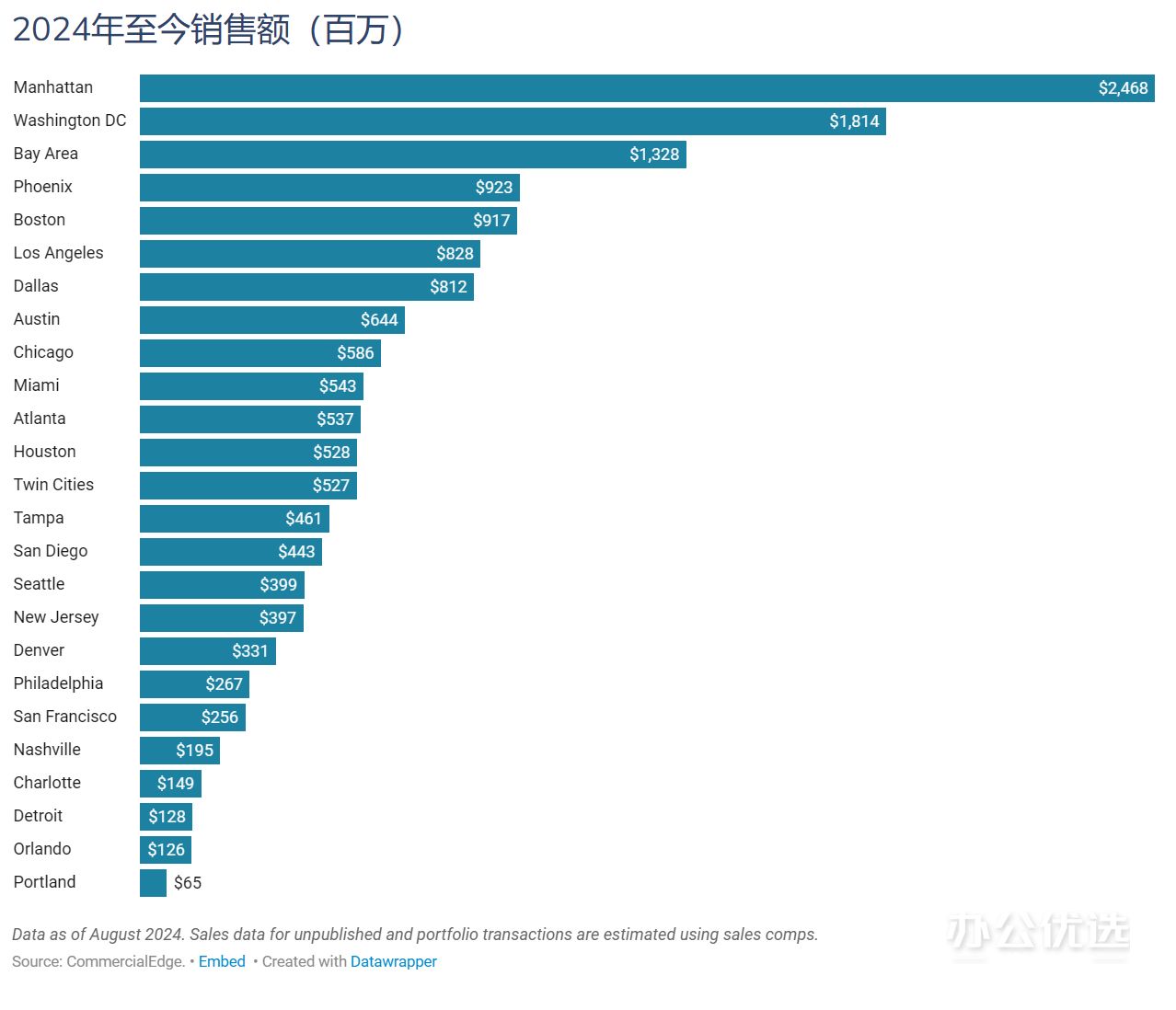 我们最新的美国写字楼市场报告显示,截至8月底,全美写字楼销售总额达到209亿美元,平均每平方英尺价格为173美元。
