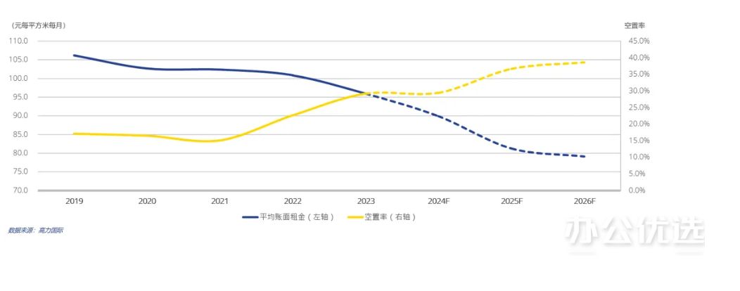 目前,需求侧市场观望情绪还较为浓烈,企业扩张依然偏保守,同时叠加部分项目面临大租户退租的情况;预计四季度,空置率仍将维持高位,账面租金持续下降;未来两年,如果新增需求无法如期恢复,随着更多的新项目进入市场,整体空置率将持续攀升,市场去化压力加大的同时,平均租金将进一步下探。