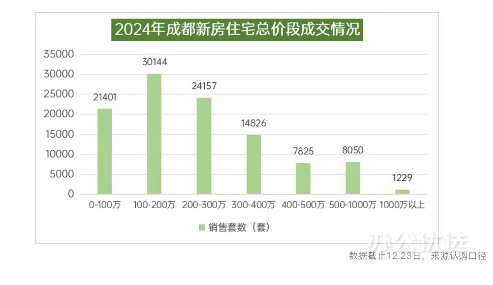截止2024年12月27日,成都单套总价超过1000万元的房源成交量已超过1200套,达到历史新高,去年这一数据还是900余套。